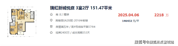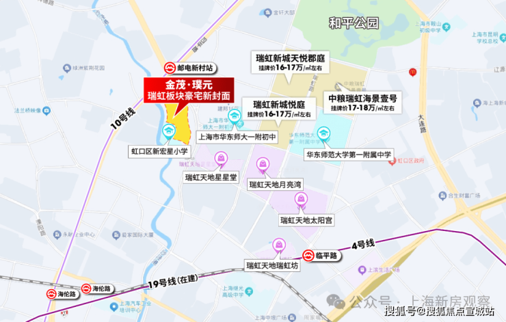 再看二手房,瑞虹新城板块次新房挂牌均价在10-18万/㎡不等,整体上越新的房子越贵,比如瑞虹6789期目前挂牌普遍在15-18万/㎡。