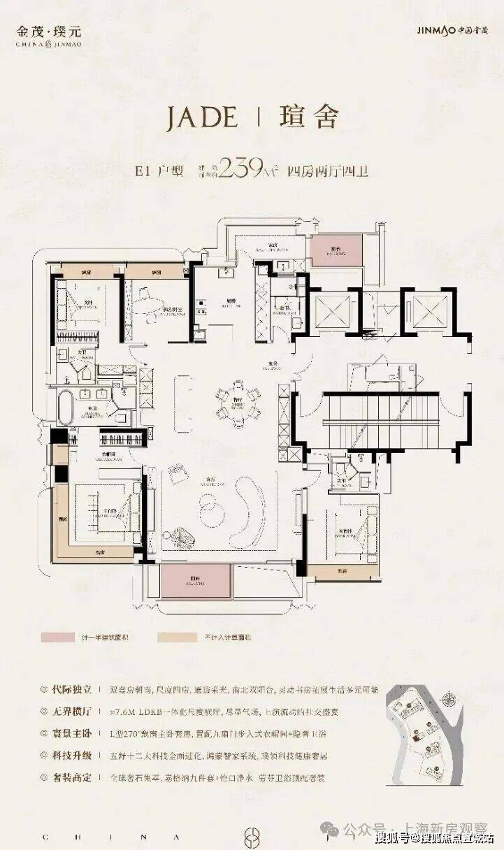 据悉,产品体系,金茂上海第一个TOP级「璞系」+「科技住宅」作品,最快4月底展厅,6月份样板间,7月底首开,9月份实景示范区(会所等)开放。