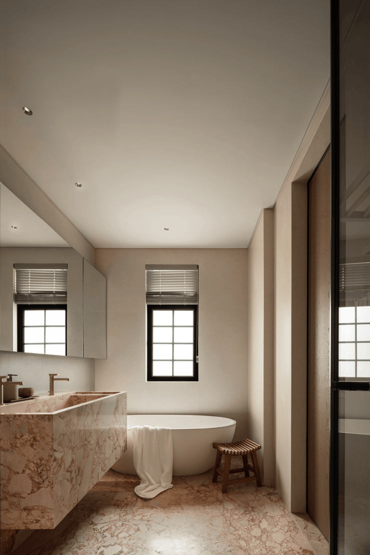 三层:主卧+ 书房组成豪华套房,将近40㎡,一层一户,将主人空间需要的尺度感与私密性拉满,同时外接约 11.35㎡露台,将城市风景与星空纳入日常。