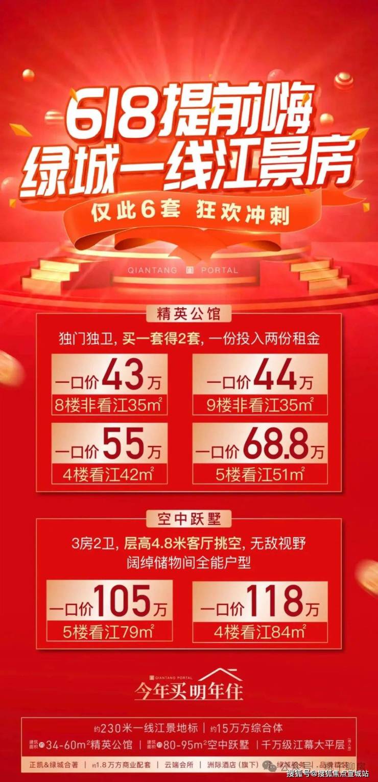 绿城钱塘之门:618提前购一口价、好楼层‼️好价格、好户型、买一层送一层、一线江景公寓