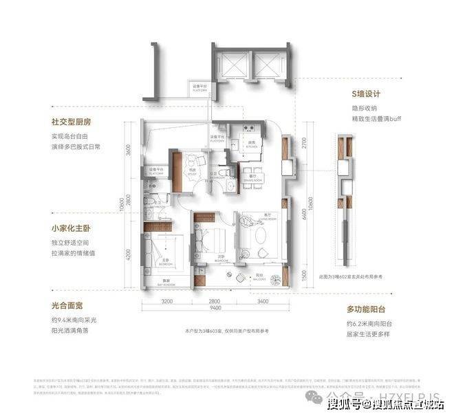 【光合面宽】约9.4米南向采光,阳光洒满角落