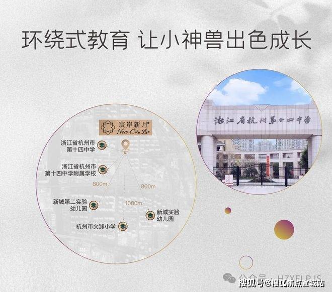 1公里环绕式学校:杭州第十四中(康桥校区)一路之隔。项目斜对面即杭州第十四中学附属学校(九年一贯制)。新城实验第二幼儿园、杭州市文渊小学(新城校区)、新城实验幼儿园,均在直线距离约1公里范围内,主城区完整式教育链无需“二次迁徙”。(以上内容仅供参考,不作为学区承诺,具体教育信息以政府教育部门政策为准)