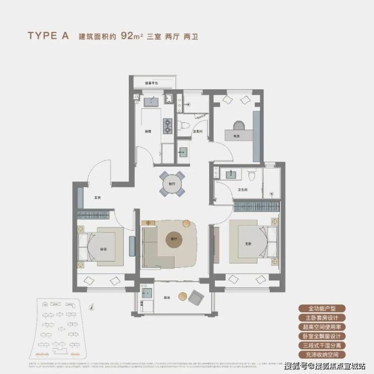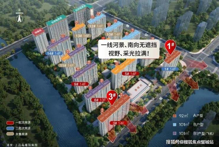 浦发上品主推建面约92-101㎡3房,3种全功能户型。