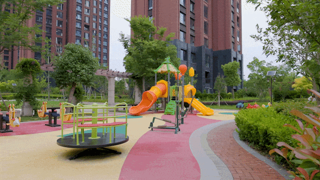 一棵棵绿植,是散落在社区里一个个点,当点连成线,于是就能看到全域呈现的中轴景观。俯瞰社区,视觉效果超具冲击力,满眼间尽是绿意。