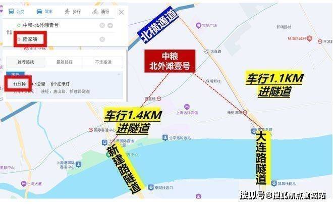 自驾上,项目往北约300米就是北横通道,往南车行约1公里,就是新建路隧道和大连路隧道直达浦东。从项目到陆家嘴、北外滩和外滩都在10分钟左右。