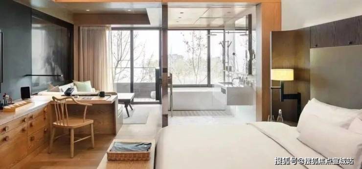 当你走向房间,一路走过一条长长的过道,一面是斑驳的老木头铺成的笔直的墙面,而另一侧是不规则形状的玻璃窗,徘徊于对称与不对称的设计中,依稀看见斑驳的岁月影子,把时光的记忆充分融入建筑里。