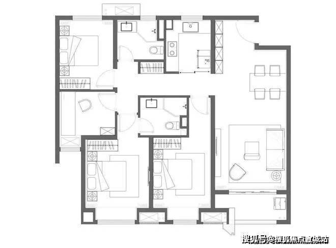 户型设计:约 115㎡户型为 3 房 2 厅 2 卫,是 “飞机户型”,餐客厅一体化,U 型厨房,卧室全飘窗。约 140㎡户型为 4 房 2 厅 2 卫,四开间朝南,半开放式 U 型厨房,一体化中西双厨设计。