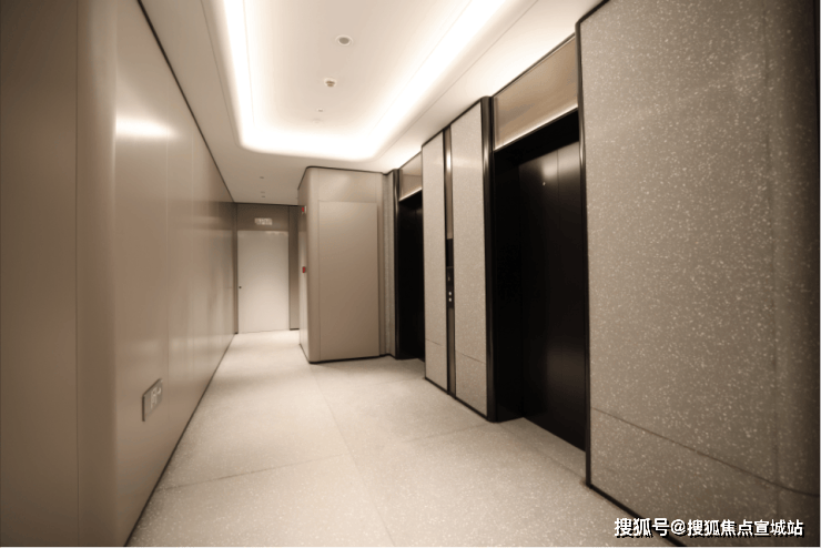 大堂墙面全部采用定制弧面铝板,每一个弧面都代表着经费。