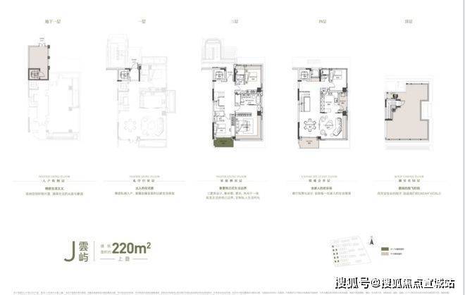 目前,在售一期5套建面约175-220m²叠墅(四层)