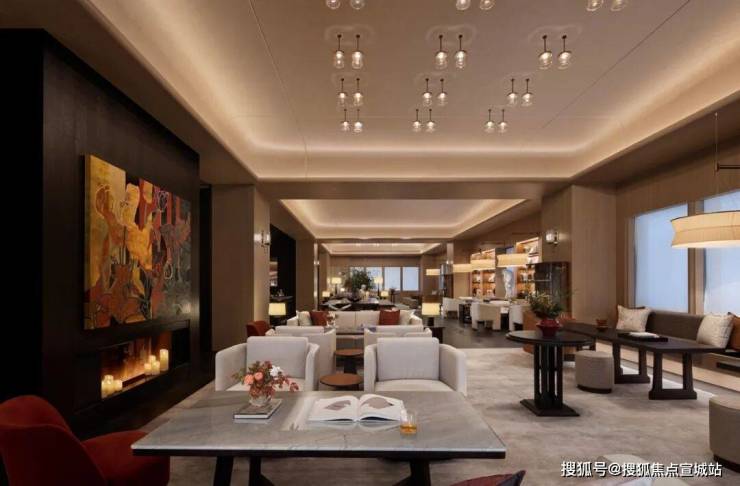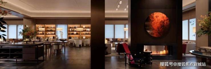更有面积超大的会所空间,像是行政酒廊与图书馆的复合体,它不是一览无遗的辽阔,而是隔而不离的丰饶。
