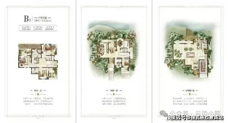 户型面积:建面约 411-611㎡,地上面积 255.36㎡-471.22㎡。