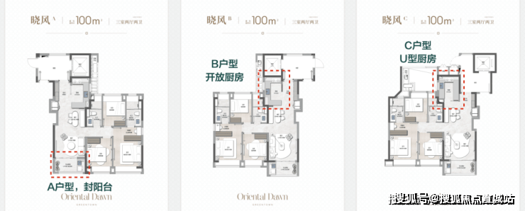 户型设计上,建面约100㎡户型,功能性做到3房2卫,适配市场主流需求。