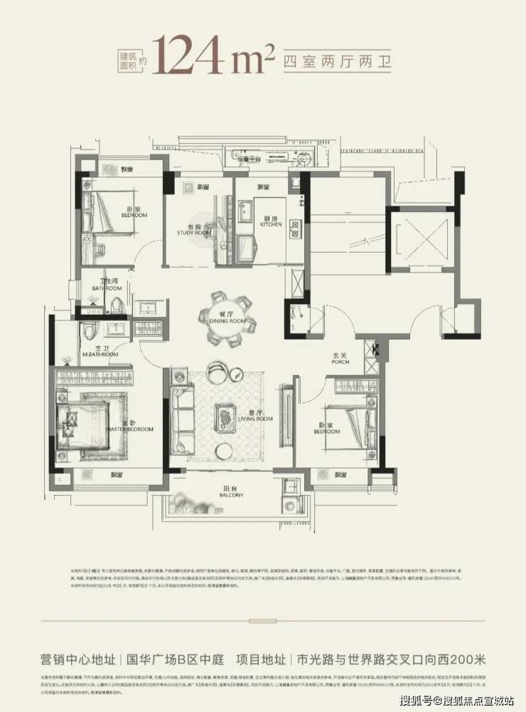 建面约124㎡4房(电梯洋房),总价1159万起