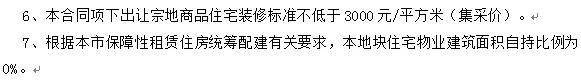 根据土地转让合同要求显示,地块规划住宅下限130套,住宅装修面积比例100%,装标3000元/m²(集采价)。