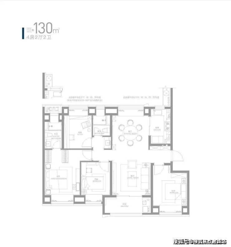 约130㎡四房采用“飞机户型”设计,约13.5米整体面宽,拥享非凡光影与通透视野。