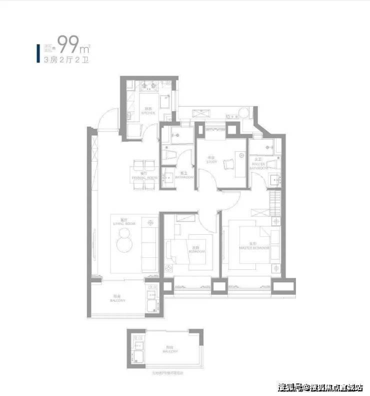 约99㎡三房,全卧室+卫生间均带飘窗,清风光影景色宜人。