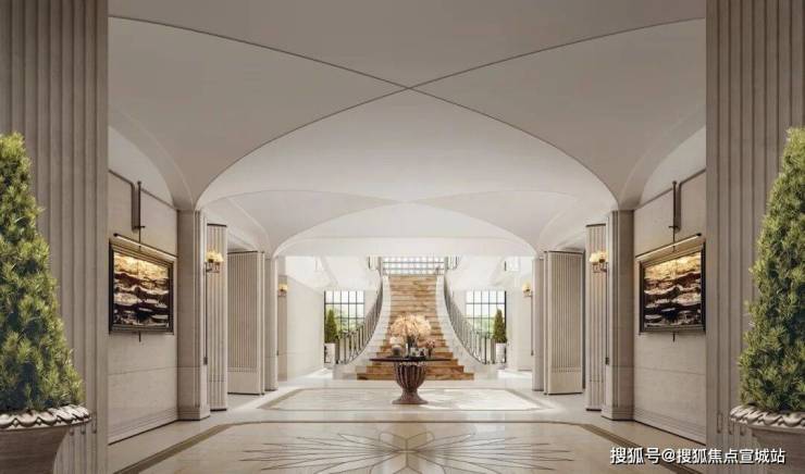 本案公区月恒宫、日昇台,以南法度假风格为基调,运用浅色木纹石石材与特殊艺术涂料与法式GRG线条等材质,营造质朴而优雅的浅弱对比空间。设计汲取地中海度假精髓:开放式廊厅与拱形门洞串联功能区域,营造通透流动的空间体验;精心设计多层次漫射光照,塑造宁静光影氛围;选用天然材质与手工艺制品,构筑温暖质朴的触感体验。