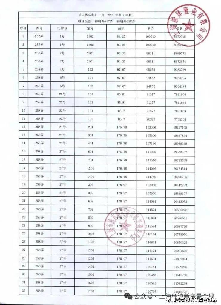 前期「一房一价表发布」