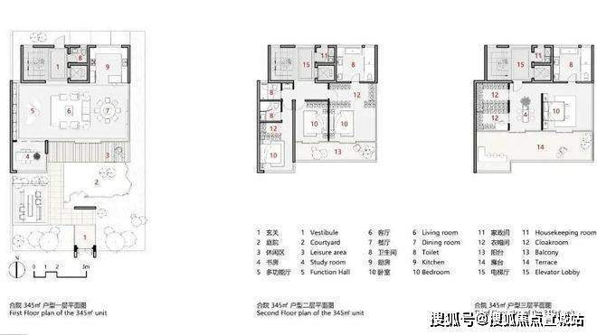 住宅产品由合院、排屋和叠墅组合而成,户型充分发挥项目的景观优势大量设置阳台、退台、屋顶露台,客厅、主卧等主要空间转角两面设置大面积玻璃窗把湖景最大化纳入室内。