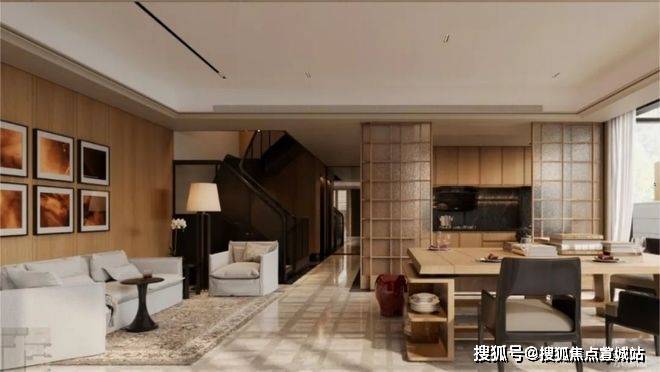 一楼LDKG一体化设计,不仅让空间更加完整,还增强了家庭成员间的互动。南向客厅+餐厅的一个巨大开间,搭配大面的落地窗。