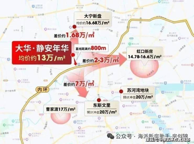 上游东斯文里预计比项目贵7万/㎡,同级虹口新房比项目贵2-3万/㎡,下游新房也比项目高1.68万/㎡,大华·静安年华安全垫拉满!