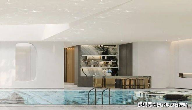 会所配套:拥有三重共约2500㎡的会所及泛会所配套空间,户均会所面积达50㎡,包含泳池、健身房、接待区、私宴厅等。