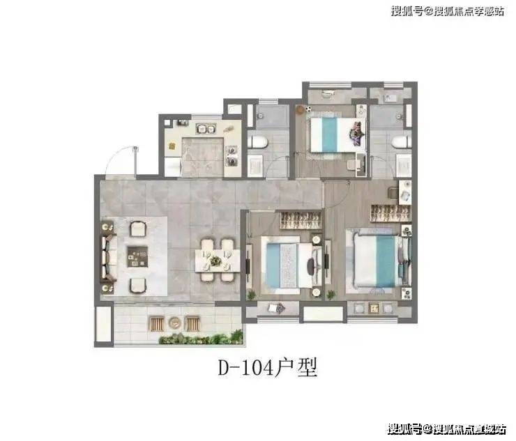 两间卧室分别位居于客厅两侧,私密性更佳;