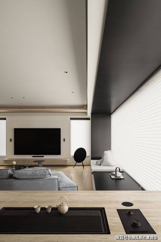全开放式设计,岛形沙发打破边界,让交流随光影自由发生。午后的光线从侧面洒落,家具被赋予立体的光影层次。