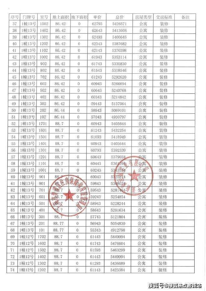 一房一价表