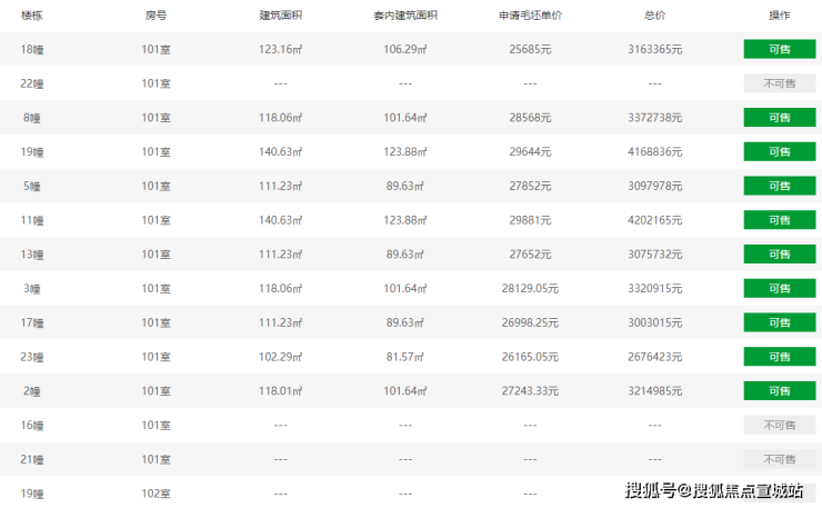 和萃澜庭一房一价表: