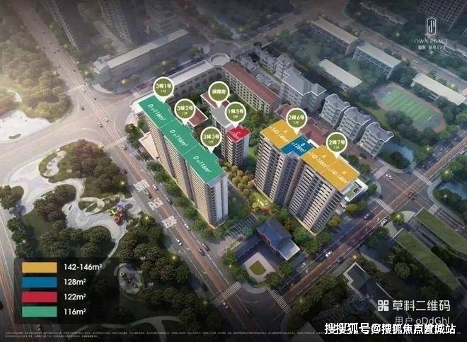 产品规划:以洋房、小高层及叠拼别墅为主,规划建设多栋8-16层住宅。主力户型为建筑面积约95-173平方米的三房至四房,包括三房两厅两卫(95-125㎡)和四房两厅三卫(143-173㎡),部分户型采用四阳台设计;叠拼别墅建筑面积约173-210㎡,配备独立庭院。