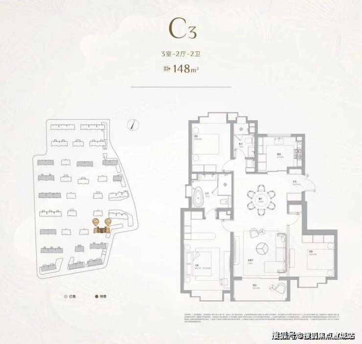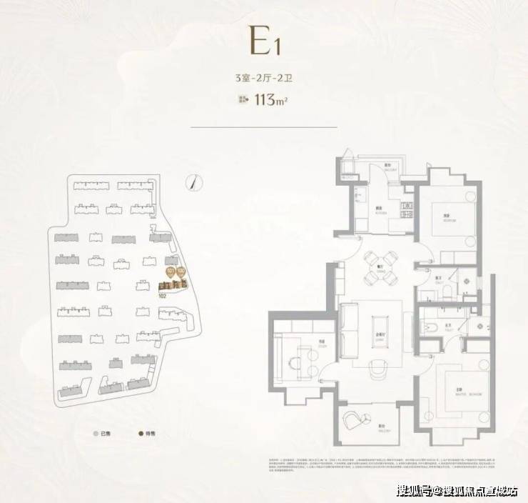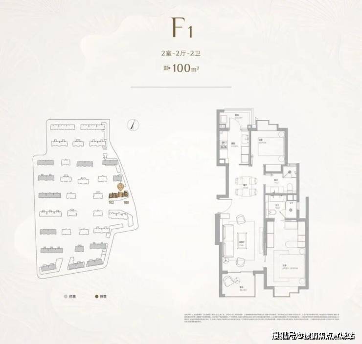 二室户型:建面约102㎡,主力为最后批次小户型,仅少量在售