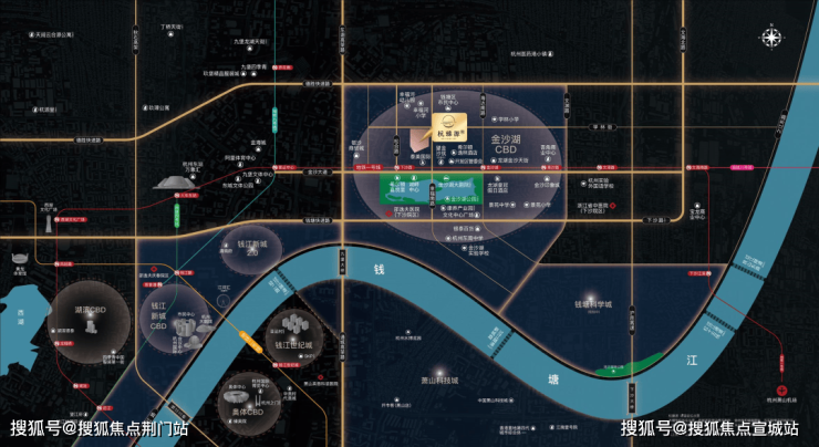 项目位于钱塘区地处金沙湖板块核芯区,一脉承接钱江新城、钱新2.0,承载钱塘区大量企业总部需求的同时,又可坐享核心地段的环湖高光配套赋能,杭州第四座CBD-金沙湖商务区已然成形.