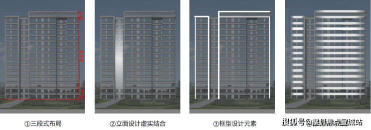 立面采用三段式现代构图,以简洁线条构建骨架,材质与构造呼应水乡记忆: