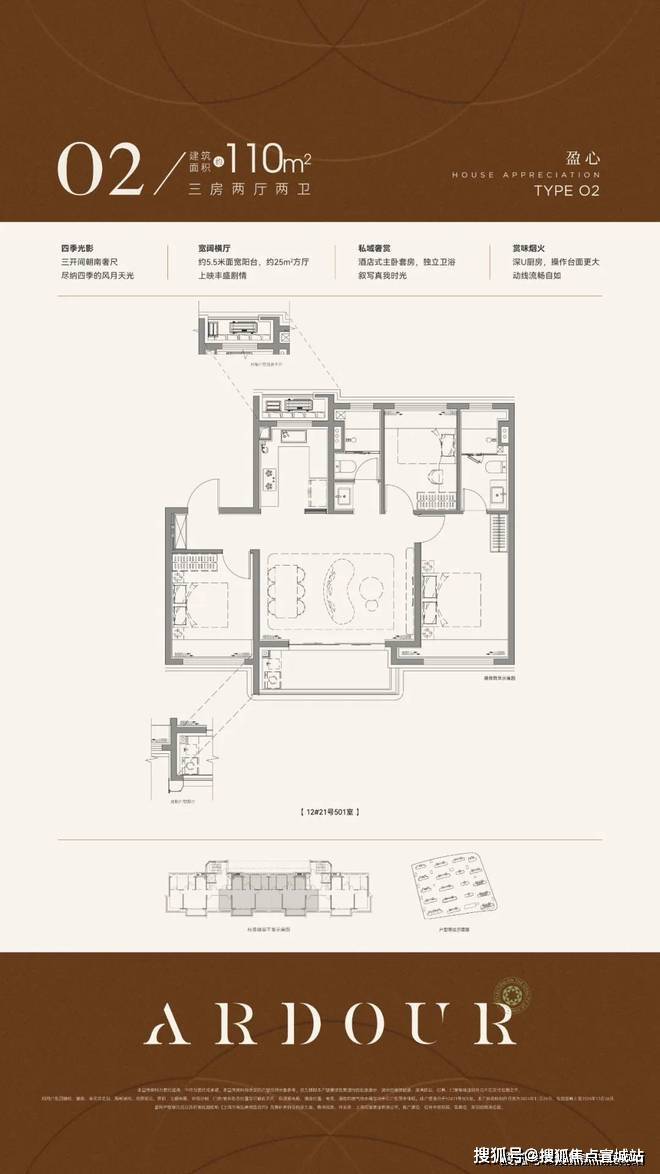 2、镜⾯美学:⼤窗墙⽐,打造宽屏⽴⾯:社区上,项目享四重酒店式归家