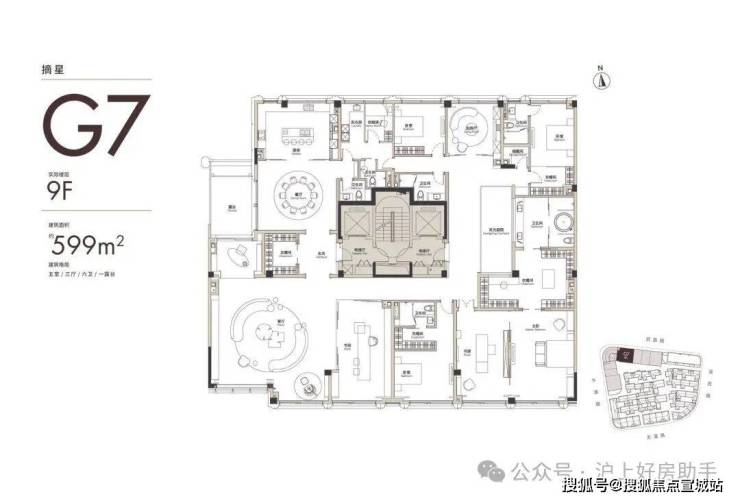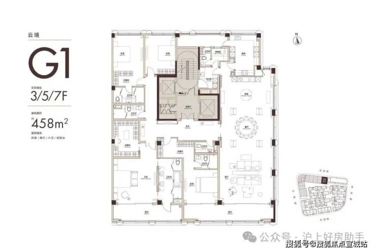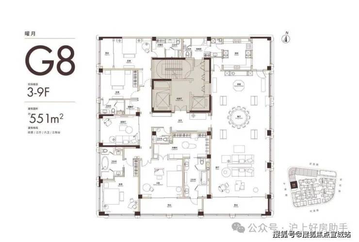 建面408㎡大平层南向面宽26.8米,得房率89%