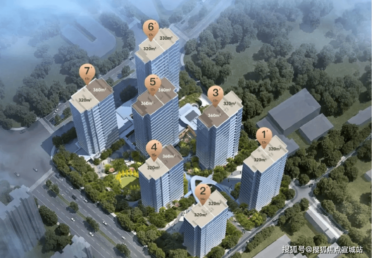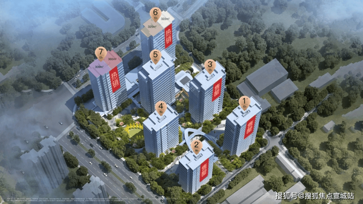 建筑布局:7栋围合式布局,楼间距最大达63米,户户观景