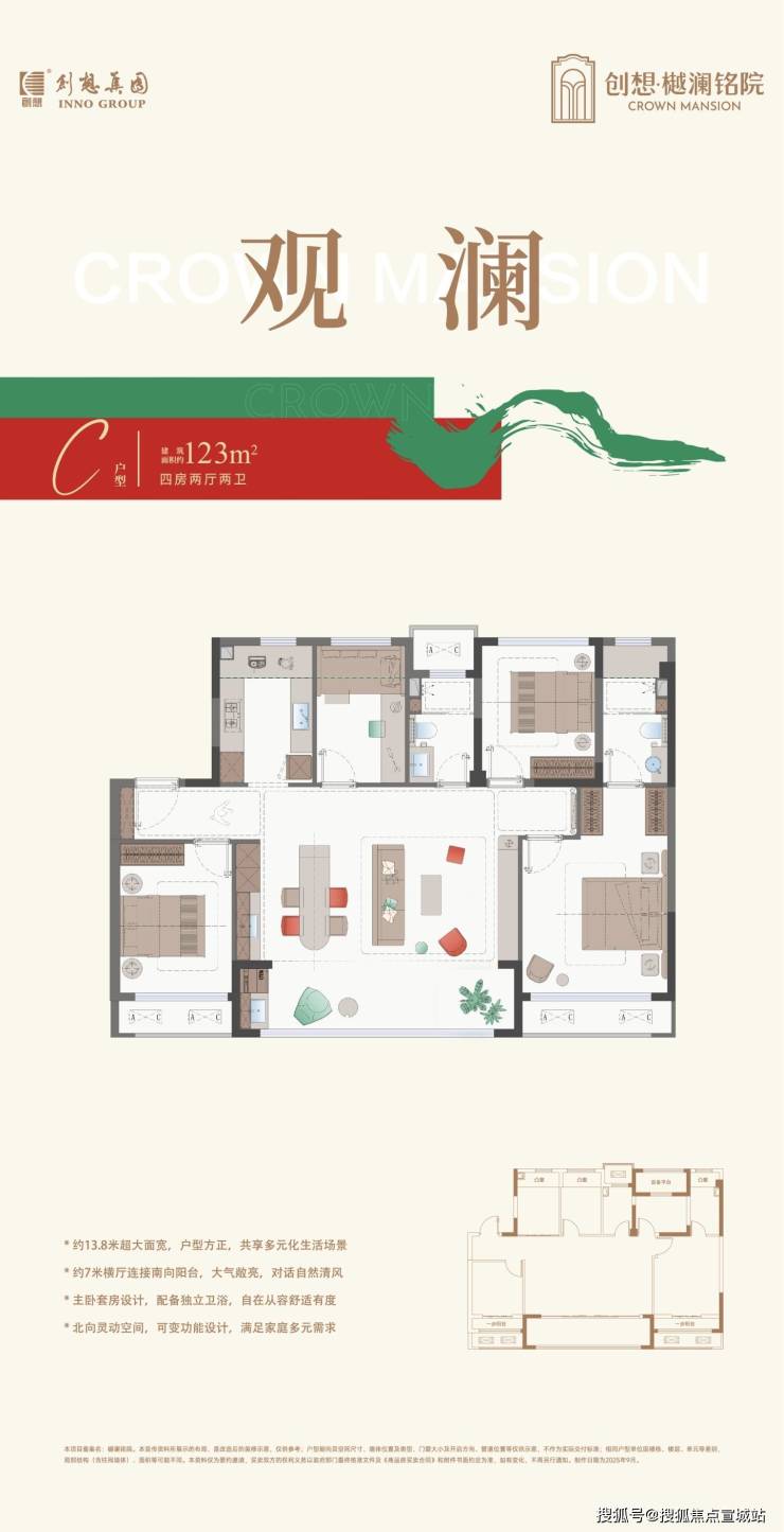 136㎡户型南向面宽达13.9米,适合三代同堂