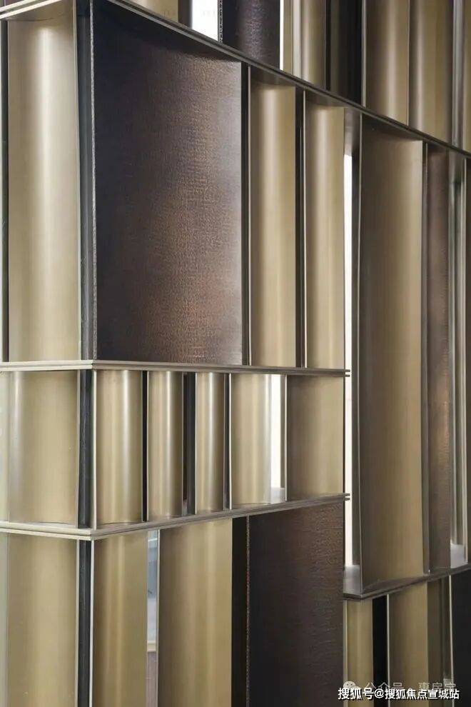 一块游廊上的锤纹铜板深深打动了我,锤纹最早源于金银铜器的加工,“手落为一锤 四锤为一纹”,这块铜板需要通过匠人千百次的手工捶打才能形成阡陌纵横的纹路变化。这样的手工慢艺,在招商序的会所之中不止一处,在如今机械化模板化的时代之下,这份用心实为珍贵。