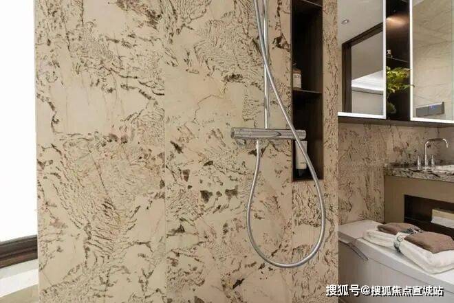 比如:除了卧室的拼花地板外,✅✅招商序售楼处电话:400-885-1337✅✅墙面与地面绝大部分都是岩板与奢石!就连卫生间的墙面、餐客厅外连通的阳台都做到了岩板通铺。