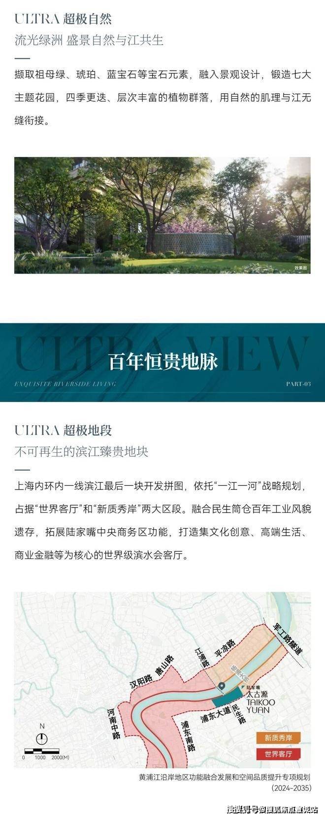 1.绝版地段:陆家嘴北滨江最后一块成片开发住宅用地,独占约1.5公里S湾黄金岸线,直线滨江80-100米,无遮挡一线江景