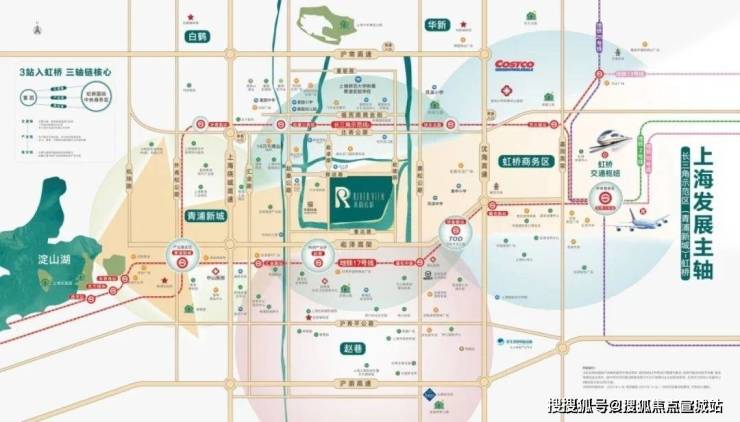 轨交17号线:项目距赵巷地铁站约2.3km,6站直达大虹桥交通枢纽