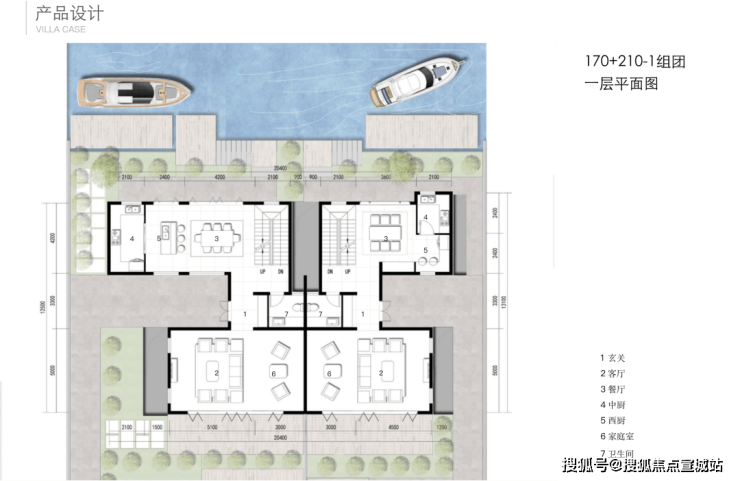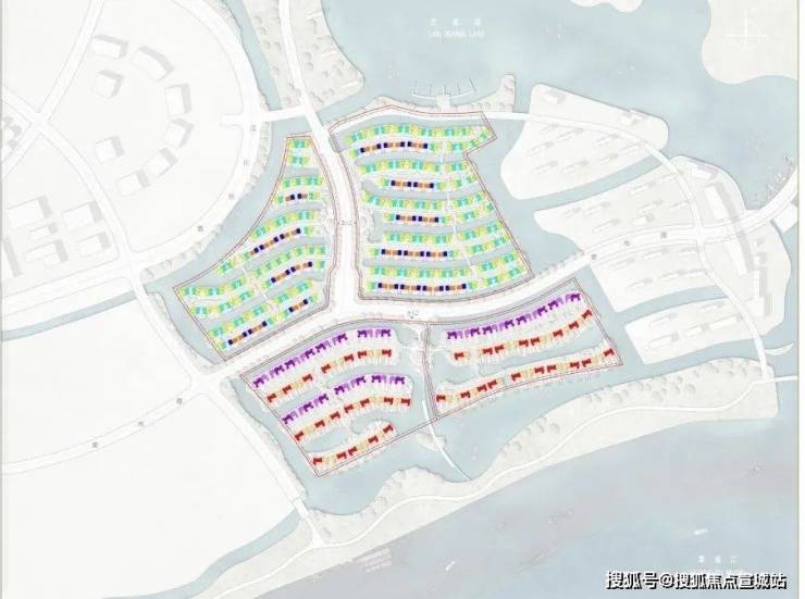 项目从此前曝光的设计方案就可以看出亮点,每一排别墅前都有一条渠道,引入水系,可以停游艇。
