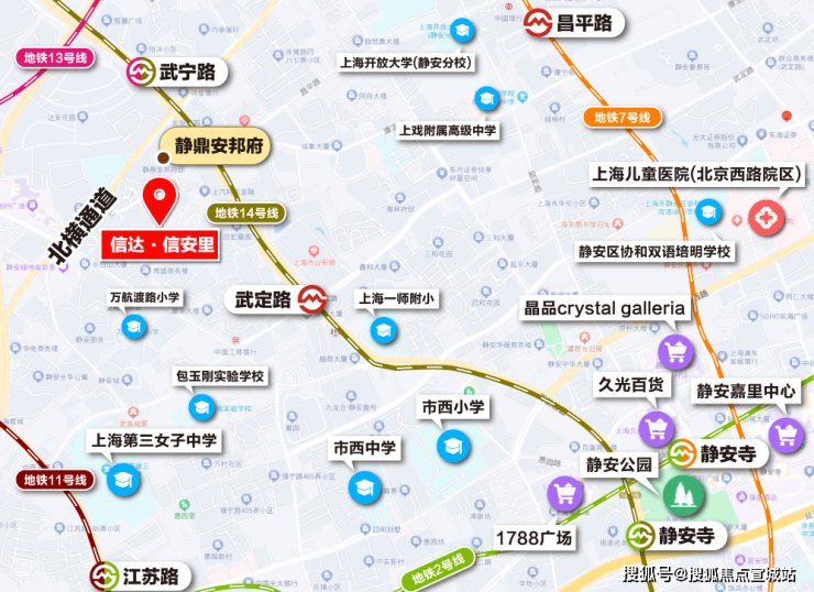 交通配套方面:项目还有着高效的出行系统,增强了通达性。13、14号线都步行可达,武宁路站和武定路站都步行约500米左右。1公里范围内,地铁线路就更丰富了,2号线、7号线的昌平路、隆德路、江苏路、静安寺等市中心地铁站都可步行到达。