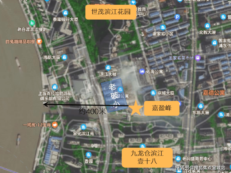 项目位于浦东银城路-浦明路,南面是张家浜,张家浜南面就是豪宅九龙仓,西面直线约400米就是黄浦江。但在嘉盈峰与黄浦江之间是6层楼的老小区众盛公寓,所以低区住户不仅看不到江,还要每天直面老破小小区。