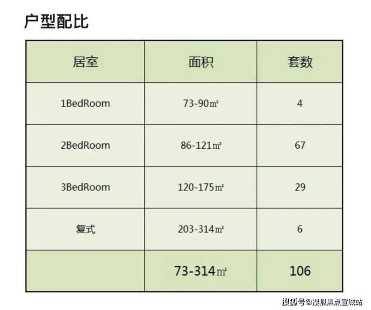 项目户型非常之多,主力户型为86-13㎡平的2-3房,最小73㎡1房不到一千万即可上车内环内,但是也只有4套。