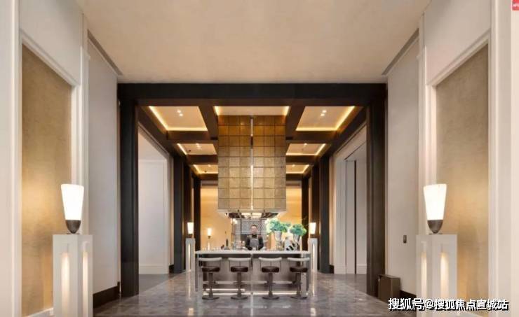 建面约190㎡C户型,两梯两户,私享梯厅,家的玄关尺度,延伸至电梯厅,增加实际使用面积。入户处大师定制瓷板门牌画,私属感满满,打造专属归家仪制。