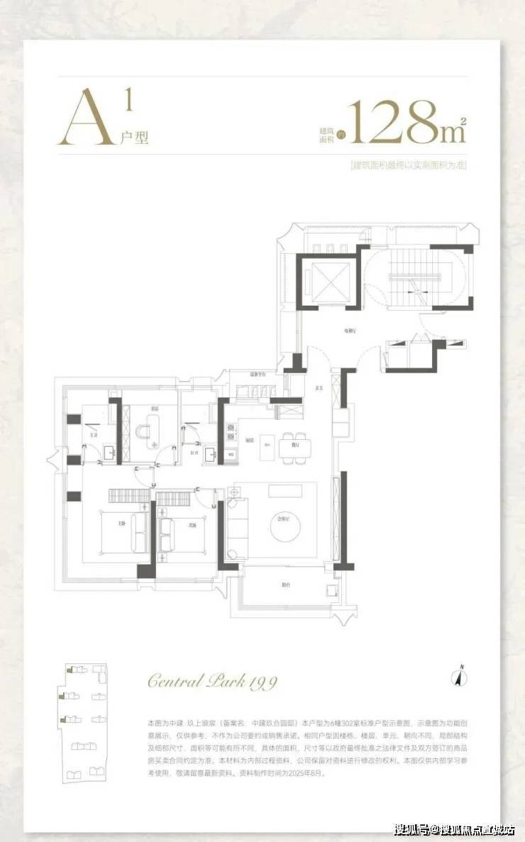 约128㎡A户型,动静分离格局,功能区与休息区互不干扰,超大南向面宽+270°采光面,客厅开间达到了约5.4米,景观视野突出。