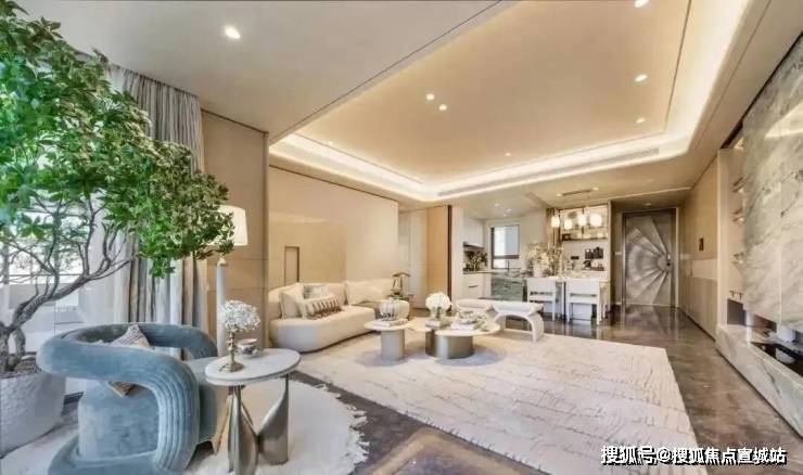 在装饰细节上,从天花板的曲面吊顶、墙体的圆角过渡,到定制家具的流畅线条,都在诉说喜曲不喜平的优雅,天花吊顶,更有刻槽工艺,融入项目logo,赋予业主独一份的尊崇。