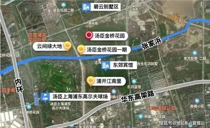 汤臣君品项目占地约495亩(约33万m²),总建面约49.6万㎡(其中地上总建面约23万㎡), 容积率为 0.7;与浦开集团打造的约634亩东郊体育公园共同组成整个地块,地块四至:北至锦绣东路,南至张家浜河,西至云山路,东至金科路。一条蜿蜒的张家浜河天然河道穿社区而过,将整个地块分为东、西两部分,总体分6期开发建设。整块地外围和中心均被东郊体育公园所环抱,可谓“生活在四季的中央”。